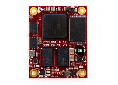 Модуль SOM-CYCLONE-V-SE построен на базе FPGA семейства Cyclone V SE от Altera. На кристалле также интегрирован процессор ARM® Cortex™-A9 MPCore™ с тактовой частотой 800 МГц. На модуле установлена оперативная память DDR4 объемом до 1 ГБ.